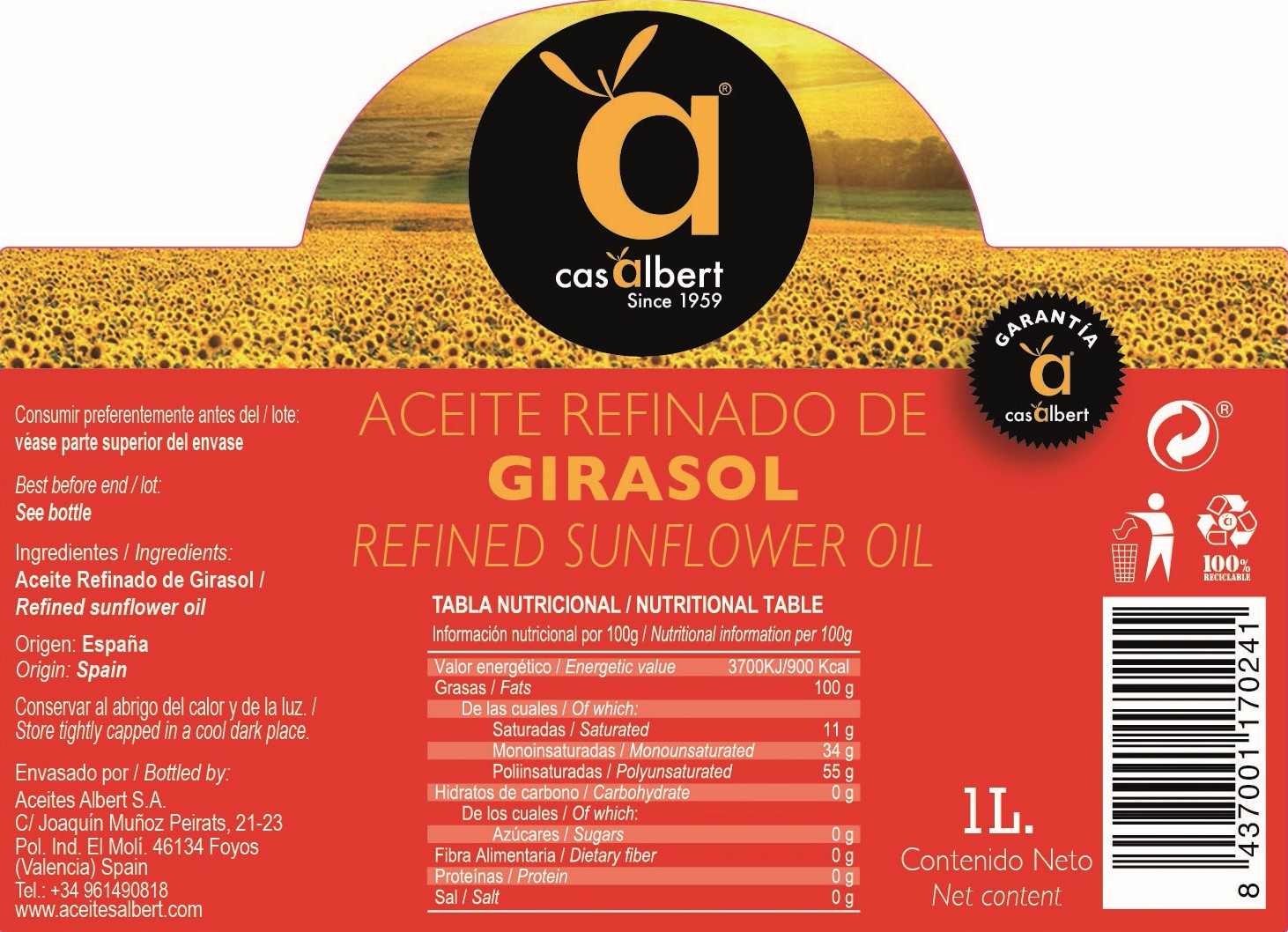 ACEITE DE GIRASOL 1 LITRO