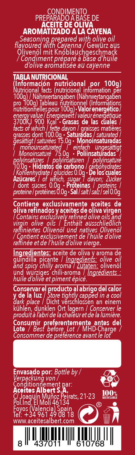 ACEITE DE OLIVA AROMATIZADO A LA CAYENA 250ML