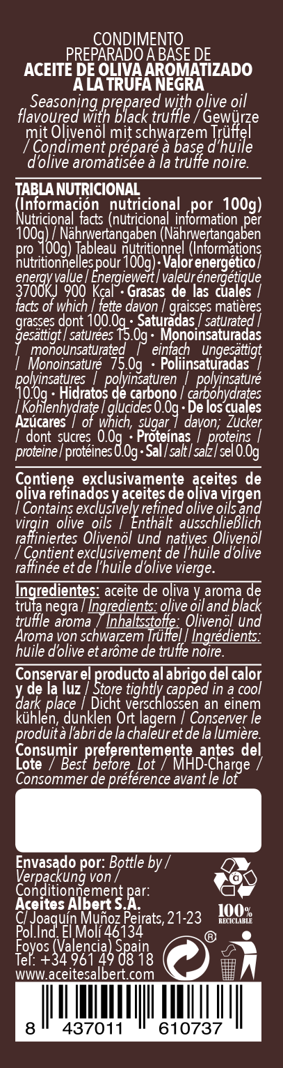 ACEITE DE OLIVA AROMATIZADO A LA TRUFA NEGRA 250ML