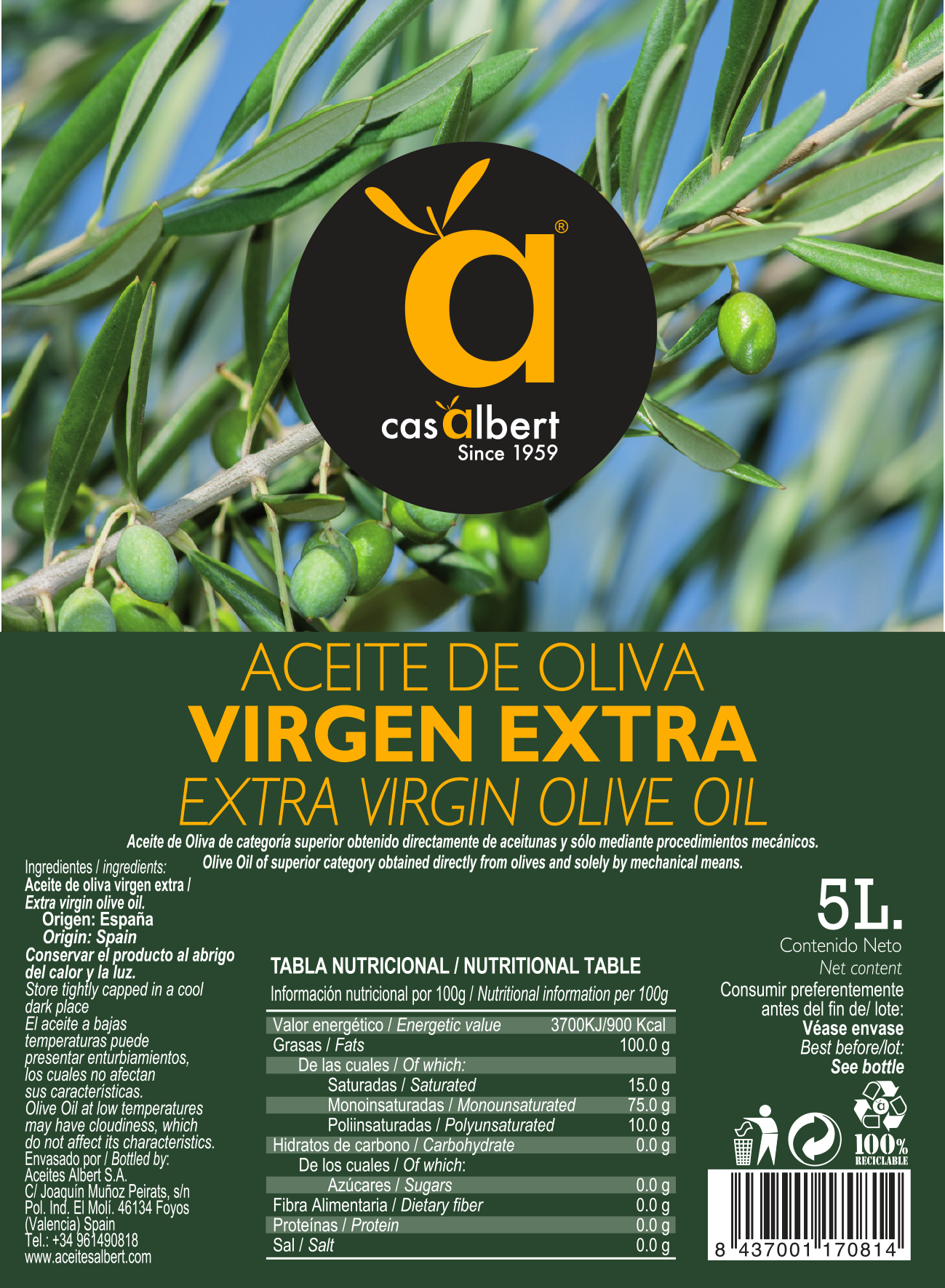 ACEITE DE OLIVA VIRGEN EXTRA 5 LITROS