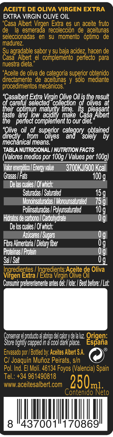 ACEITE DE OLIVA VIRGEN EXTRA GOURMET (250 y 500 ML)