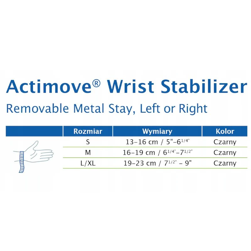 Muñequera Estabilizadora con férula metálica extraíble Ambidiestra Actimove® Wrist Stabilizer es un estabilizador de muñeca listo para usar, que sujeta ligeramente la muñeca.