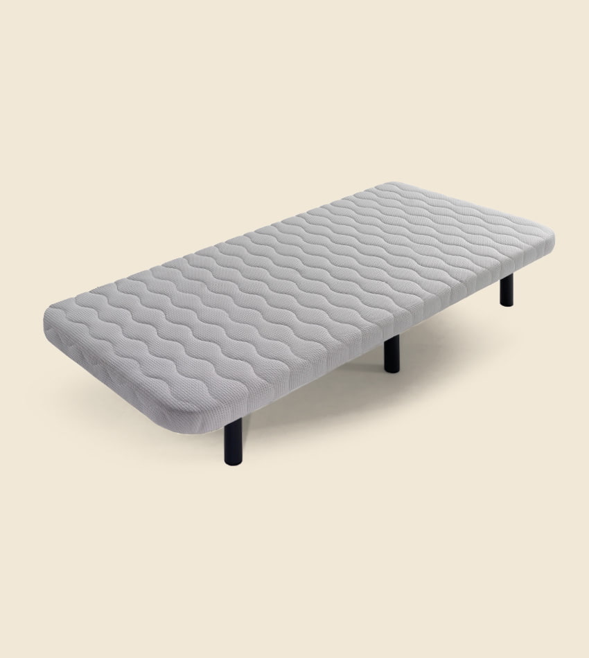 La base tapizada B8 es ideal para colchones infantiles y juveniles aportando una superficie de descanso cómoda y a la vez firme que ayuda a mantener una postura correcta durante el sueño. Su estructura de 6 patas de hierro y barras de refuerzo garantizan la máxima seguridad y fiabilidad. Además, la base perforada y tapizada en malla Airfresh 3D ofrece una alta transpirabilidad, reduciendo el exceso de calor y proporcionando un descanso fresco.