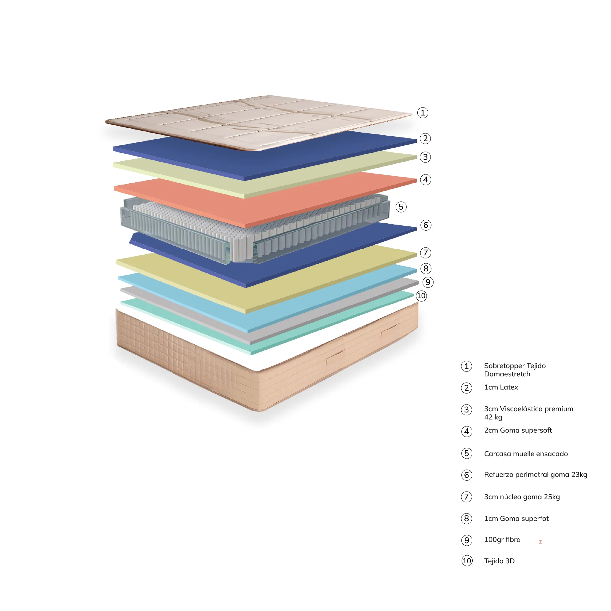 • 3 cm de viscoelástica de alta densidad (42 kg/m³).