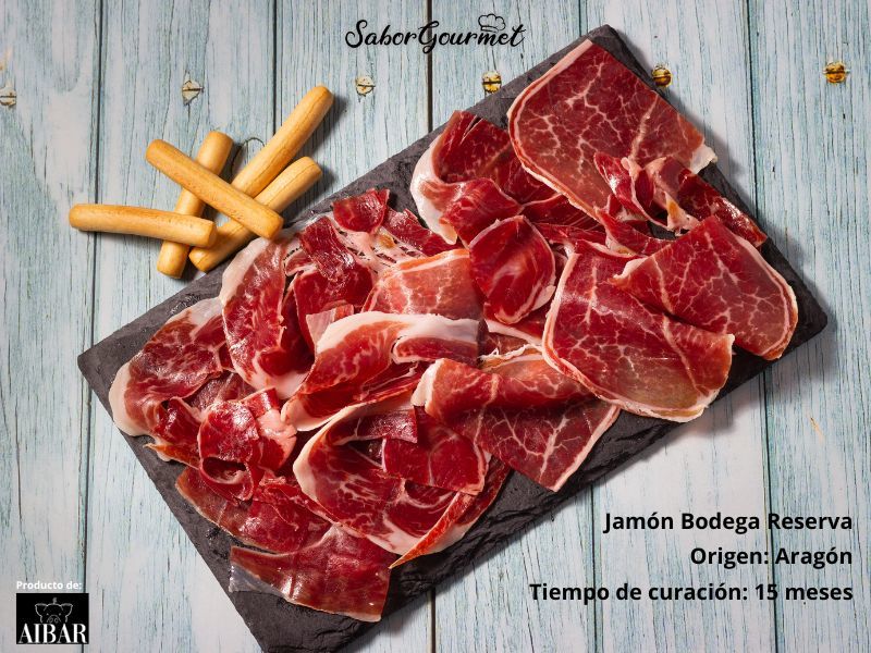 3,20 €El precio original era: 3,20 €.2,99 €El precio actual es: 2,99 €.Añadir al carritoEl jamón gran reserva tipo serrano con origen en Aragón y con un mínimo de 15 meses de curación suena absolutamente delicioso. El cruce con cerdo Duroc para obtener infiltración, veta y dulzura es una elección interesante para mejorar la calidad y el sabor de la pieza.