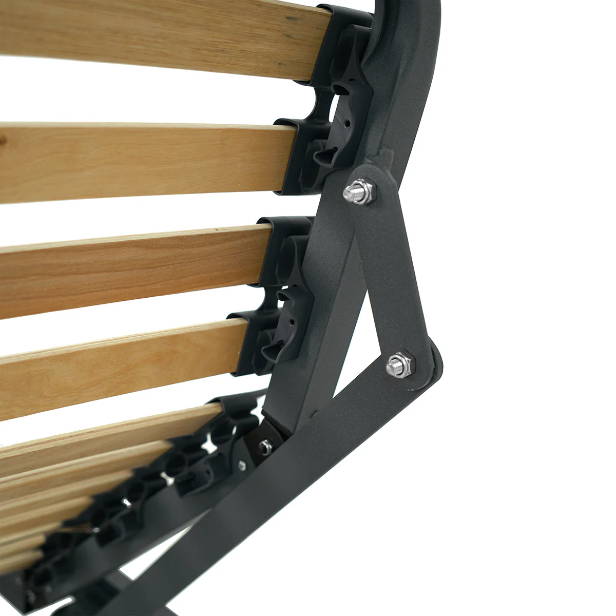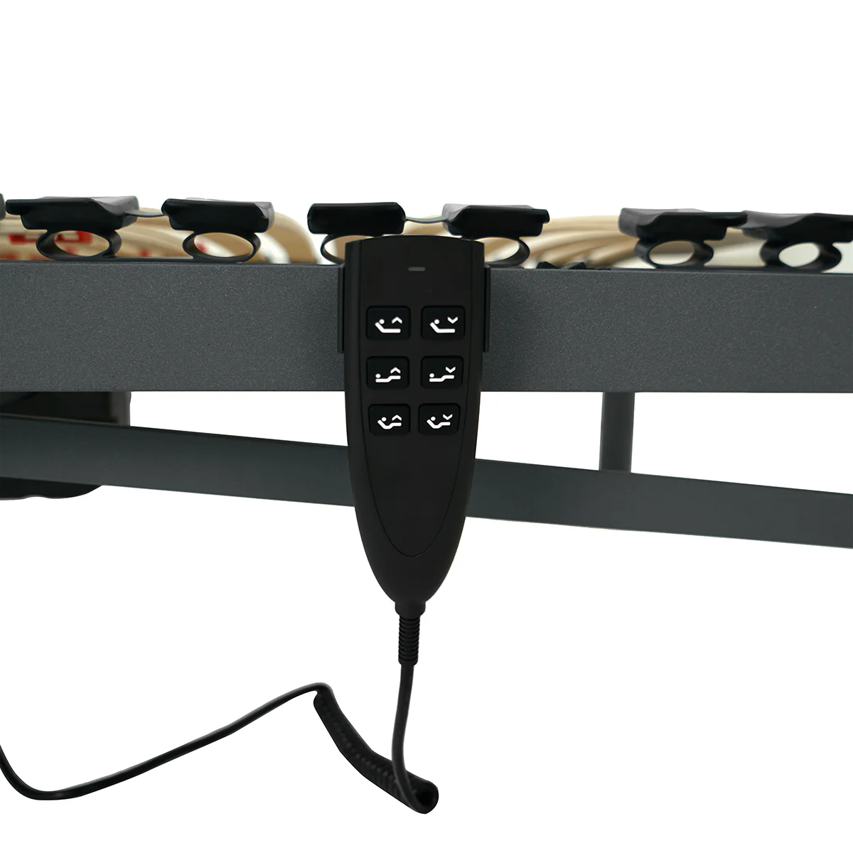 Estructura resistente con motor silencioso y mando para ajustar respaldo y piernas fácilmente. Láminas de madera de haya, pintura epoxi y patas regulables en altura para adaptarse a ti y a tu espacio.