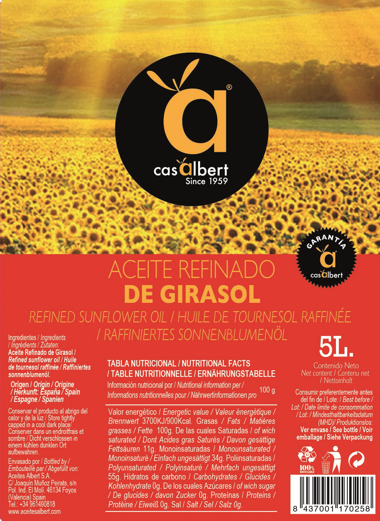 - 1 garrafa Aceite de Girasol 5 litros