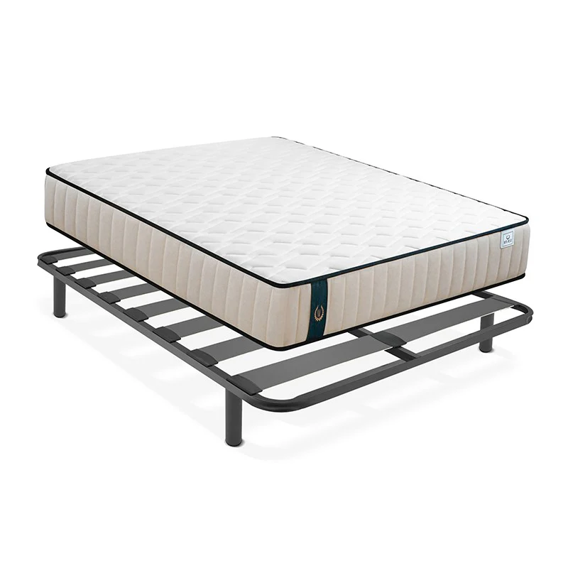 Pack somier Flexy reforzado de alta durabilidad, estructura de acero grafito y láminas de madera con revestimiento texturizado con colchón Maximus de 21 Cm de altura tejido Boston Stretch 250g, fibra hipoalergénica Super Soft.