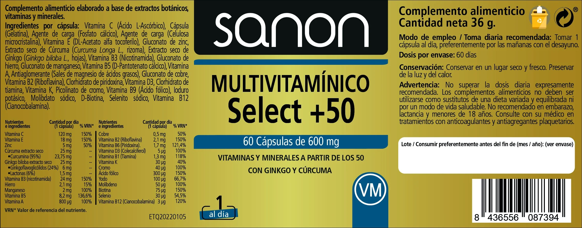 SANON Multivitamínico Select +50 60 Cápsulas
