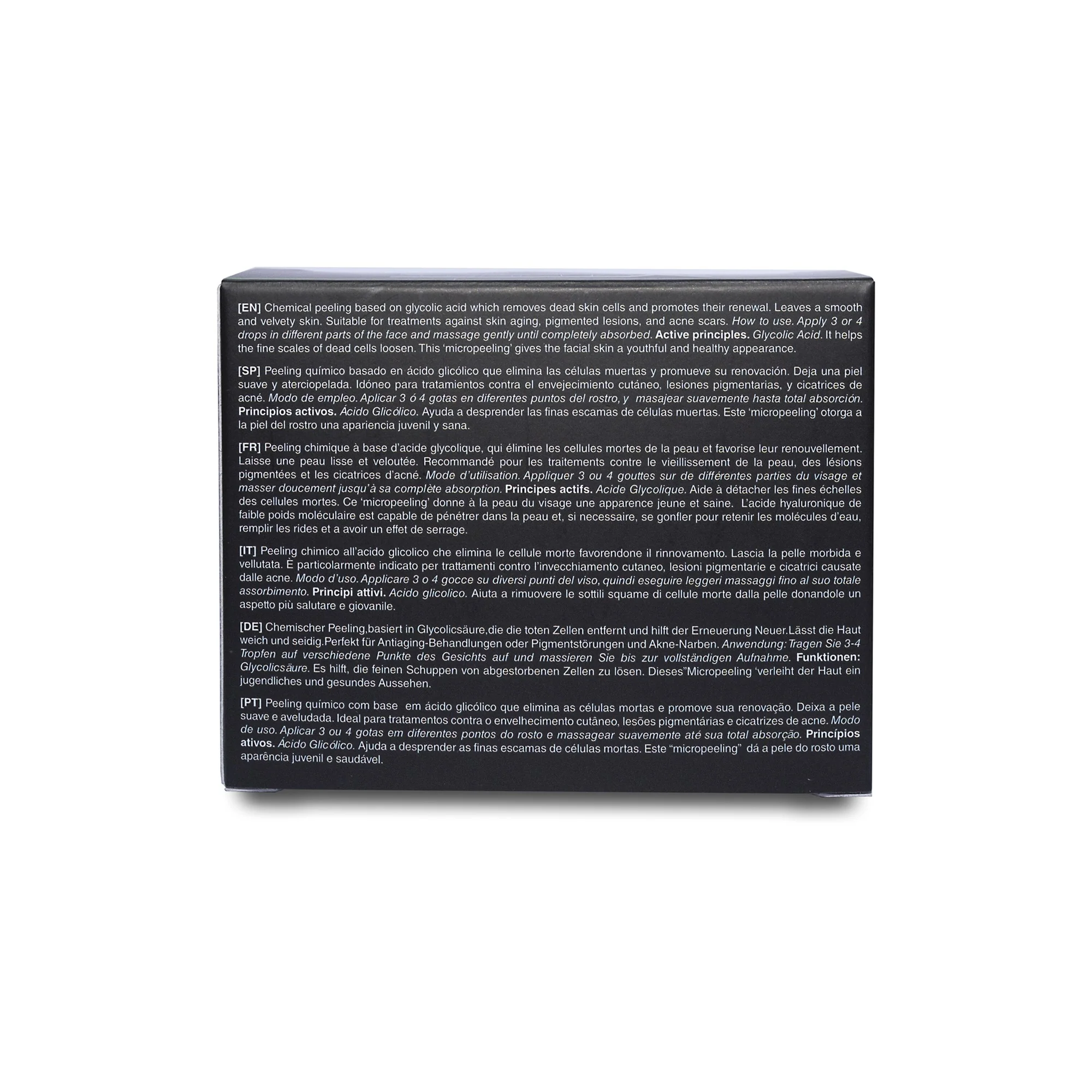 Peeling químico con ácido glicólico para eliminar células muertas y renovar la piel.