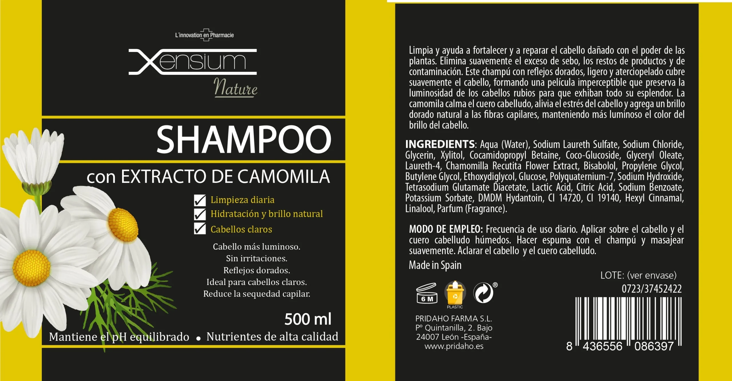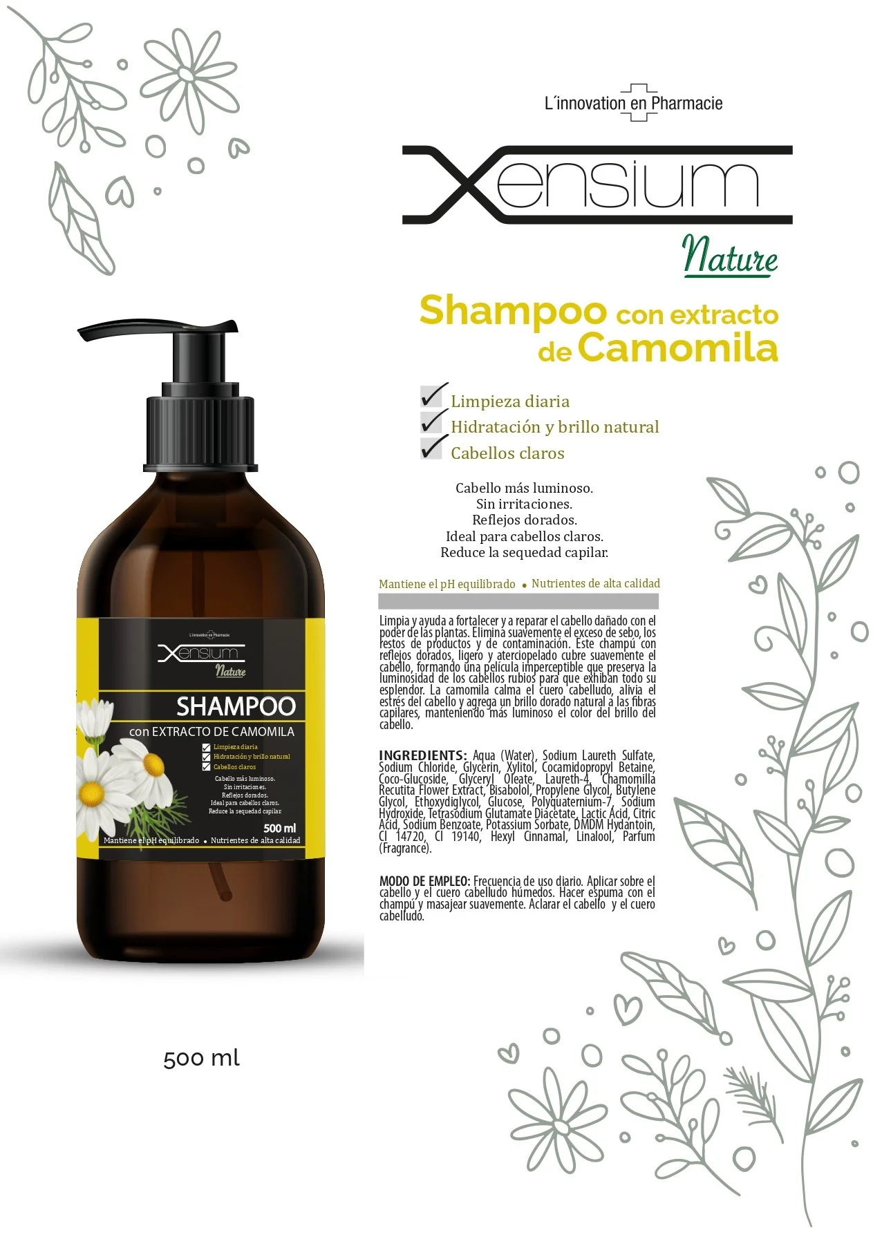 XENSIUM Nature Shampoo con extracto de Camomila 500 ml